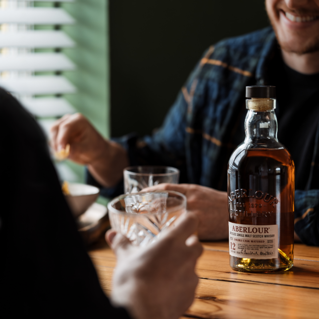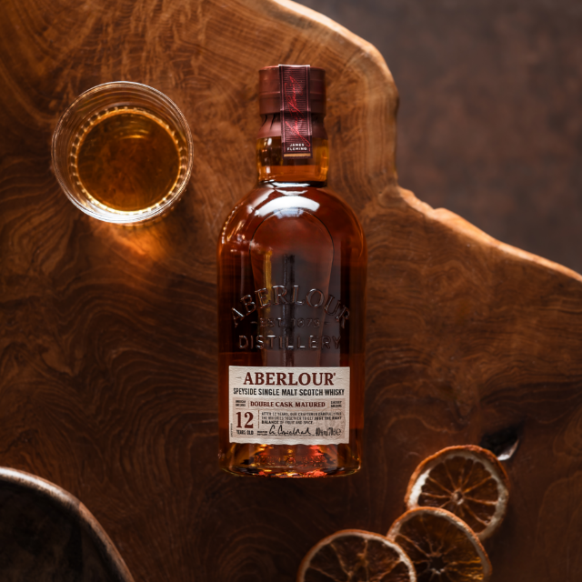 ABERLOUR IS BORN FROM ART, PASSION, AND KNOWLEDGE PASSED DOWN THROUGH GENERATIONS. ITS STORY IS ONE OF COMMUNITY, LOCAL INGREDIENTS, AND FAMILIES OF CRAFTSMEN. FROM THE SPEYSIDE REGION IN SCOTLAND, THE DISTILLERY IS LOCATED NEAR THE RIVER SPEY, WHERE THE PURE WATERS PLAY A KEY ROLE IN CREATING ITS ICONIC SINGLE MALT. A WHISKY WITH DEPTH OF FLAVOR AND CHARACTER THAT SPEAKS FOR ITSELF.